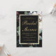 Classy and elegant floral botanical on black front with gold colour text and faux gold frame, and soft mint green back bridal shower invitation.