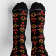Dark Folk Art Floral Print Cosy Rustic Black Fall Socks