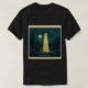 Dark forest night scene, log cabin, UFO abduction beam, glowing campfire, full moon, Saturn-like planet, pine trees, retro sci-fi illustration, muted teal and yellow colour palette, minimalist design, eerie atmosphere, Visit a quiet place.