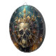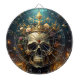 This artwork features an ornate skull adorned with a regal crown, intricately entwined with lush vines and vibrant flowers. Flickering candles add a mystical glow, casting dynamic shadows that bring the scene to life. All of this is set against a serene forest backdrop, creating a striking balance between beauty and mystery.