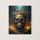 This artwork features an ornate skull adorned with a regal crown, intricately entwined with lush vines and vibrant flowers. Flickering candles add a mystical glow, casting dynamic shadows that bring the scene to life. All of this is set against a serene forest backdrop, creating a striking balance between beauty and mystery.