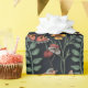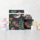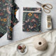 This gift wrap has hummingbirds, birds, butterflies, moths, ferns, mushrooms, and flowers on a dark blue background.