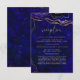 Modern trendy wedding design. Watercolor geode with elements of digital art, shades of deep blue, purple, rose gold and gold (gold is not real gold but colour), black. Elegant calligraphy. Geometric elements. Bold, modern, contrast, saturated, remarkable, unique.
