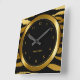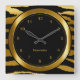 Dark Gold and Black Zebra Stripe Print Square Wall Clock