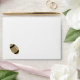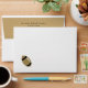 Stylish white football themed envelope, with a solid black inside and a golden tan coloured back flap. Graphics of a dark gold and black football, decorates the left front corner of the envelope. Return address done in black text, on the back flap, is ready to personalise with your information. Great finishing touch to our matching football themed couple's wedding shower invitations.