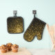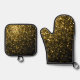 Dark gold faux glitter sparkles oven mitt & pot holder set