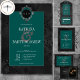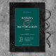 Dark Gothic Black Floral Satin Damask Teal Wedding Invitation