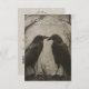 Step into the enigmatic embrace of your love story with our dark and moody gothic wedding invitation suite. Capturing the essence of mystery and romance, our wedding response card with QR code features a captivating image in a charcoal style, showcasing two majestic black ravens locked in a tender beak-to-beak embrace amidst twisted bare trees. Behind them, a soft, misty backdrop adorned with a heart of branches sets the scene for your unique union. The back, adorned with a matching tan moire taffeta background and vintage font, adds a touch of timeless elegance. Invite your guests to share in the intrigue and allure of your special day with this unforgettable invitation suite. Created by Simply Farmhouse Press.