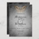 Dark Gothic Black Watercolor Brown Moth Wedding Invitation