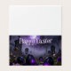 A mysterious Easter scene set in a foggy graveyard with glowing purple eggs and a gothic cathedral in the background. Dark tones, misty atmosphere and eerie lighting create a unique, haunting twist on traditional Easter imagery.