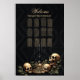 Dark Gothic Elegance. Stunning archway supported by two majestic pillars finished in a dark finish. These pillars are lushly covered in ivy, the green leaves of which provide a vibrant contrast to the dark materials. At the base of the archway lie three realistically depicted human skulls surrounded by more ivy. These elements add a deeper meaning to the design and are a reminder of the transience of life and the strength of love that endures even beyond death.