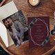 This dark gothic floral formal photo wedding invitation design features a simple moody jewel tone burgundy background with retro victorian watercolor greenery and floral embellishments adorning a modern minimalist font that offers a sophisticated and whimsical presentation for a timeless romantic goth wedding or other special occasion. Beautifully suited to a spooky halloween event in the fall or unique winter event in a casual or formal setting. As with all of our products, if there is any special request concerning the design, please do not hesitate to ask.