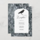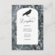 Step into a world of dark enchantment with our captivating gothic wedding reception card design. Against an antique black and grey swirled damask background, this invitation sets an alluring and mysterious tone, embracing the essence of gothic romance. The white arched text box adds an elegant touch, creating a striking contrast that draws attention to the heart of your invitation. At the top, a vintage antique cartouche lovingly cradles the couple's first initials, flanked by a pair of majestic black ravens on either side. These iconic birds symbolise the unbreakable bond between two souls, adding a touch of mystique and intrigue to the design. As you turn the invitation, the enchantment continues on the back with the continuation of the damask pattern, ensuring a seamless and bewitching presentation from every angle. Embrace the beauty of darkness and invite your guests to witness a celebration that defies convention and embraces the allure of gothic elegance. Let this hauntingly beautiful invitation be the perfect introduction to a wedding that will be remembered for a lifetime. This design is part of the Vintage Dark Gothic Grey & Black Damask & Ravens wedding suite collection created by Simply Farmhouse Press.