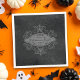 Elevate your spooky tablescape with these Halloween paper napkins designed by Destei. They feature an ornate flourish banner, spider web accents, bat silhouettes and a skull detail over a dark textured background. The centre banner frames your personalizable text areas, where you can add your family name, party title or other wording to suit your celebration. A perfect way to bring a gothic and eerie atmosphere to your Halloween feast.