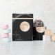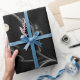 Bold dark aesthetic wrapping paper featuring abstract curved shapes, subtle stars, and soft gold accents on a matte black background.