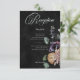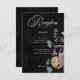 Step into a world of enchantment with our captivating wedding reception card, where elegance meets mystery. Against a backdrop of deep black, a side spray of muted flowers casts a spell of intrigue and mystique, setting the stage for a celebration like no other. The delicate white text invites you to join us for a soirée that promises to be as enchanting as it is unforgettable. Embrace the allure of the unknown and embark on this journey with this captivating wedding design. Created by Simply Farmhouse Press.