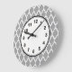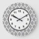 Dark Gray White Moroccan Quatrefoil Pattern #4 Large Clock