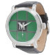 Dark Green and Grey Custom Single Initial Striped Watch