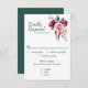 This colourful RSVP features a rich dark green text accented by burgundy roses, pink peonies and other floral elements. Your response selections are listed below. The back is colour-coordinated with the front.