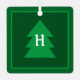 This beautiful ornament features a Christmas tree with an elegant initial.