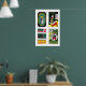 Dark Green Czechoslovak Matchbox Labels Grid Poster