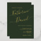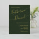 Personalise this elegant and minimalist, dark green with real gold foil typography. Romantic, elegant calligraphy for the bride and groom's names, uplevel your wedding invitation and impress your guests. Easily customise this template with your wording, venue, wedding date, time, and location.