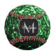 Personalise faux sparkly trendy girly sport equipment baseball ball with your initial and name. Beautiful girly glamourous dark green shiny glitters sparkles design. We use photo of green sparkles, not actual glitter! Faux sparkles!