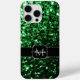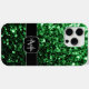 Green faux glitter sparkles Monogram iPhone 15 Case. Personalise Sparkly iPhone case with your initial and name. Beautiful girly glamourous shiny glitters sparkles. Photo of sparkles not actual glitter!