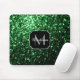Dark green faux glitter sparkles Monogram Mouse Pad