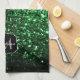Dark green faux glitter sparkles Monogram Tea Towel