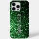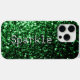 Dark green faux glitters sparkles Your text iPhone 15 Case. Beautiful girly glamourous shiny glitters sparkles design. Photo of sparkles glitter! Faux sparkles!