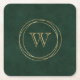 Dark Green Faux Leather Gold Circles Monogram Square Paper Coaster
