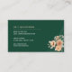 A trendy dark green background sits behind sleek lettering and elegant orange botanicals. Easy to customise with name and business information.