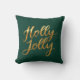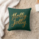 Dark Green Holly Jolly - Gold Script Holiday Decor Cushion