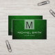 Dark Green Leather Textured Monogram Business Card