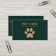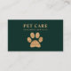 Dark Green Modern Luxury Golden Paw Pet Grooming Business Card