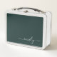 Dark Green Modern Script Monogram Name Metal Lunch Box