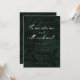 Modern victorian era vintage elegant script dark floral ornamental wedding invitation with a green tint.