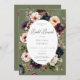 Indulge in the captivating allure of our dark and moody green bridal brunch shower invitation, where sophistication meets romance in a harmonious blend of colour and elegance. Against a backdrop of rich sage green, this invitation sets a dramatic tone. Nestled within a white oval text box, your details take centre stage, surrounded by a lush arrangement of watercolor poppies, zinnias, and other flowers in shades of navy blue, burgundy, soft blush, and gold, complemented by dark sage green foliage. Each petal and leaf whispers tales of passion and enchantment, setting the stage for a celebration that's as memorable as it is magical. Created by Simply Farmhouse Press.