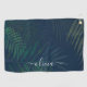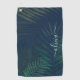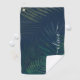Dark Green Palm Leaves Golf Towel – Tropical Monstera Print with Custom Name