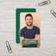 Make a bold and professional impression with this dark green photo QR code design. Featuring a clean minimalist layout with a full photo front and scannable QR code on the back, this modern design makes sharing your contact details simple and stylish. Perfect for professionals, contractors, and creatives, this customizable design allows you to add your photo, social links, and contact information for a polished and memorable networking essential.