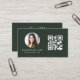 Dark Green QR Code Photo Monogram Minimalist Business Card