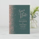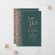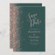 Dark Green Rose Gold Glitter Save the Date Announcement
