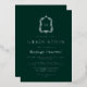 This classic, elegant graduation party invitation design features a real silver foil monogram initial in serif font encircled by a silver line art acanthus crest on a dark green background. Personalise the silver foil text with the graduate's name and the party details. The back of the card is solid green. Ideal for a high school, college or university graduate.