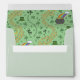 This cute envelope has a pastel green exterior with customisable Family Name and Address. Inside, a pattern with hand-drawn pots of gold, rainbows, leprechaun hats, horseshoes, lucky gold shamrock coins, green shamrocks and hearts, all against a vibrant green background. Simply click on "Personalise this Template" to insert your own information.