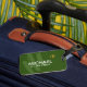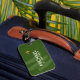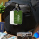 A nice luggage tag personalised with the name of the traveller on a dark green background