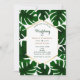 Dark Green Tropical Leaves White & Gold Wedding Invitation