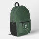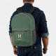 Back back in greens with name and monogram in white, outlined with rounded square in white.