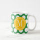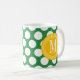 Dark Green & Yellow Big Polka Dots Monogrammed Coffee Mug