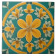 Dark Green & Yellow Flower Floral Mediterranean Ceramic Tile